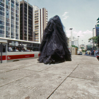 - Pensada pela artista como um objeto-montagem e objeto-imagem, A negra é uma figura fantasmática de corpo vazio que, em uma certa escala, remete a um carro alegórico de escola de samba, com sua estrutura de ferro e tule de nylon preto. Se desloca através de suas rodas, as quais fazem alusão a um tipo de trabalho desqualificado e precarizado. Carmela se apropria do mesmo título da obra de Tarsila, A negra, para repensar seu trabalho analisando o passado. Obra participante da XXIV Bienal Internacional de São Paulo, 1998.