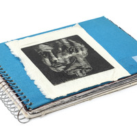 - Encadernado com espiral; Gravura em tecido e papel por Block printing (impressão em bloco/xilogravura têxtil)